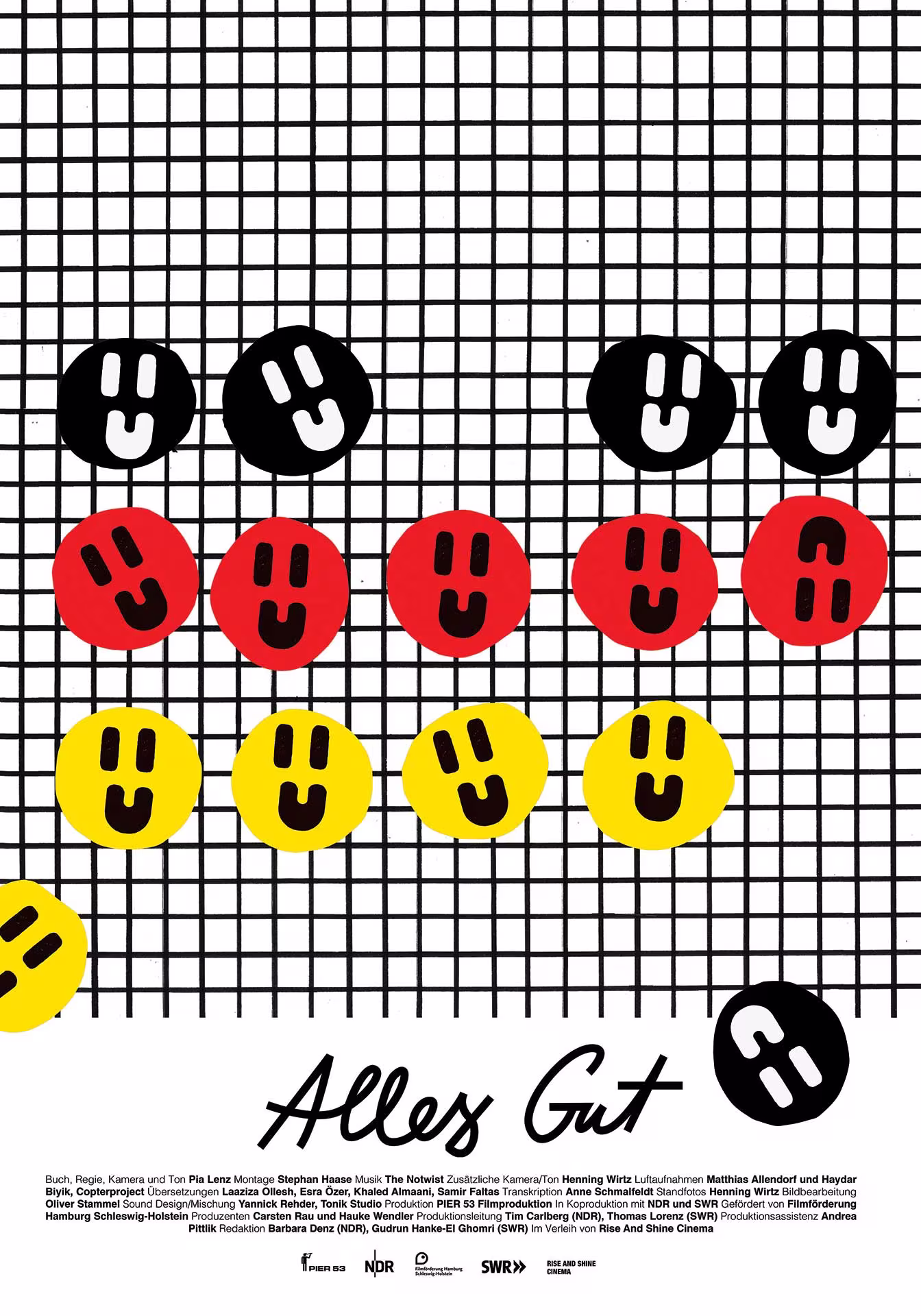 Documentary film poster. The director traces young immigrants in Germany over the course of a year. The children’s perspective unveils an undisguised and highly moving look at their new co-existence in Europe. The documentary film I’M OKAY (original title: Alles Gut) poses the question: ‘How do we give a home to those whose most urgent need is a future?’. What Pia Lenz captures in her documentary about two refugee families’ first year in Hamburg is the unbearable state between hope and fear. She shows, in an unbiased and tactfully sensitive way, just how exhausting a new beginning is for all sides.