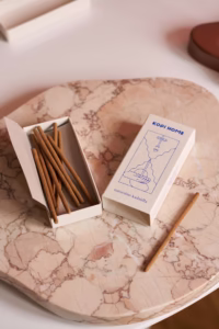 Packaging design for a set of natural handmade incense and a complimentary matchbox for Kopi Home. A jewellery and home accessory designer approached me to create a design for her new scent collection, allowing me carte blanche in the artistic direction. The idea of a tarot card aesthetics came up quickly; the composition is inspired by sketches by Fernand Léger, Le Corbusier and Marek Włodarski. Intended to resemble a pack of fortune-telling cards, the illustration is stylistically coherent with the brand’s DNA – Kopi Home identifies itself as a feminine, modern and magical brand.