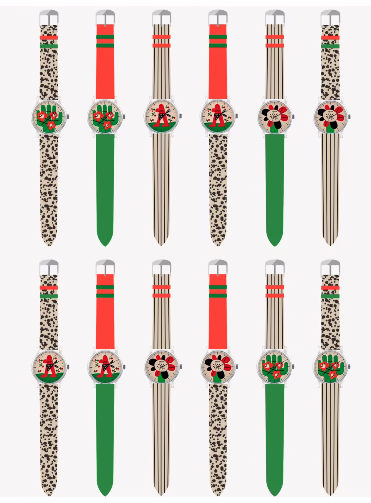 Collection of three Limited Edition Watches. Ola Niepsuj makes a bold statement with the One-Hand Watch capsule set for Minsk Watch Plant. The new collection — titled “Sunny Days” — features three takes on the one-hand watch silhouette, where dials and straps can be mixed and matched as you please. The new capsule reflects Ola’s typical style, a mixture of color blocks and cartoon-influenced graphics. The straps are kept plain or covered in geometrical patterns, which allows the illustrated clock faces to pop out. The vibrant but not obvious palette of red and green brings back your most memorable days of summer, time spent with friends, enjoying the feel of the sun and light breeze on your face. The design is finished off with an artist signature on the back.