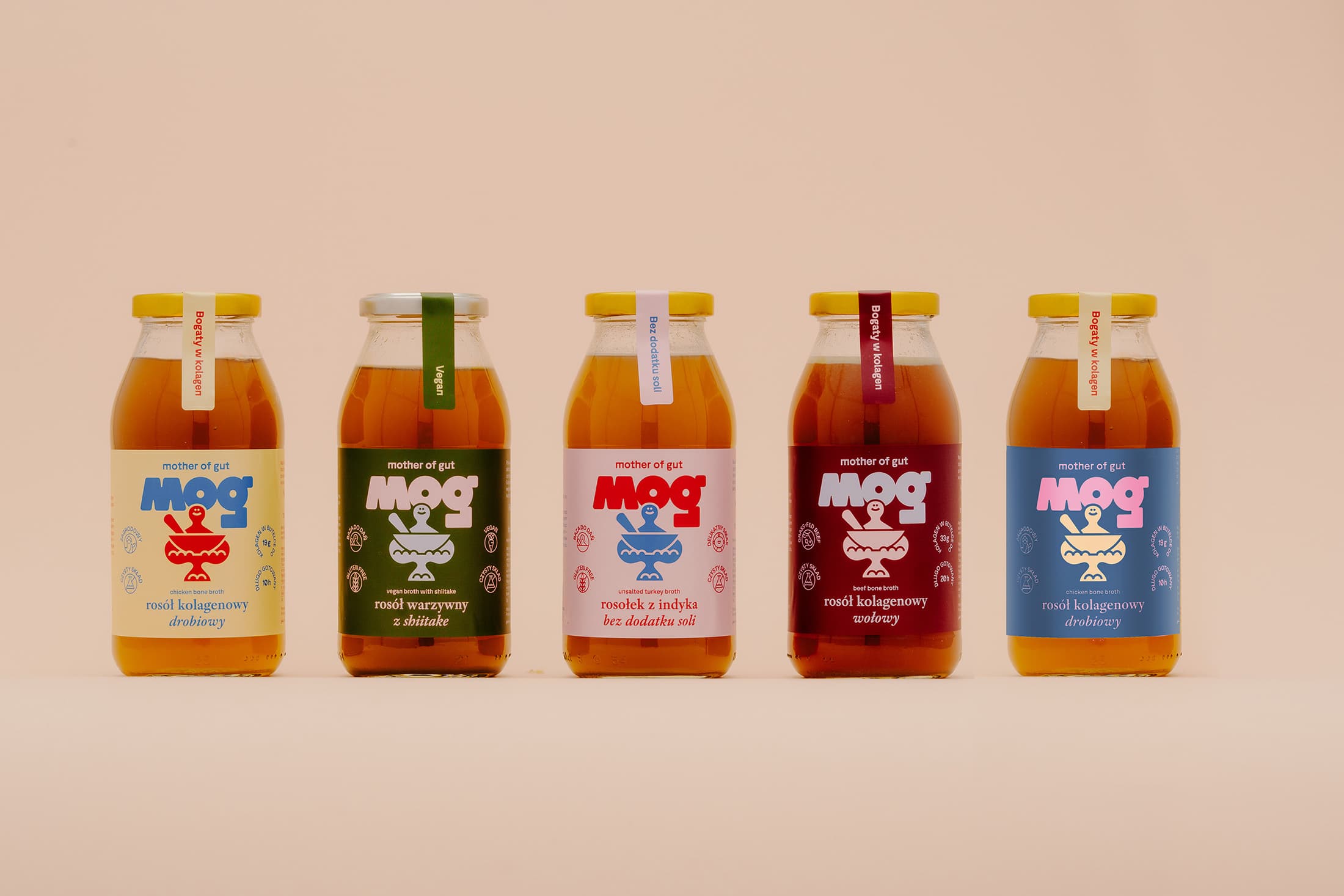 The packaging for MOG’s line of broths was designed with a focus on colour-coded clarity while strategically reinforcing logo recognition, ensuring a high-impact visual anchor for the brand’s market debut.