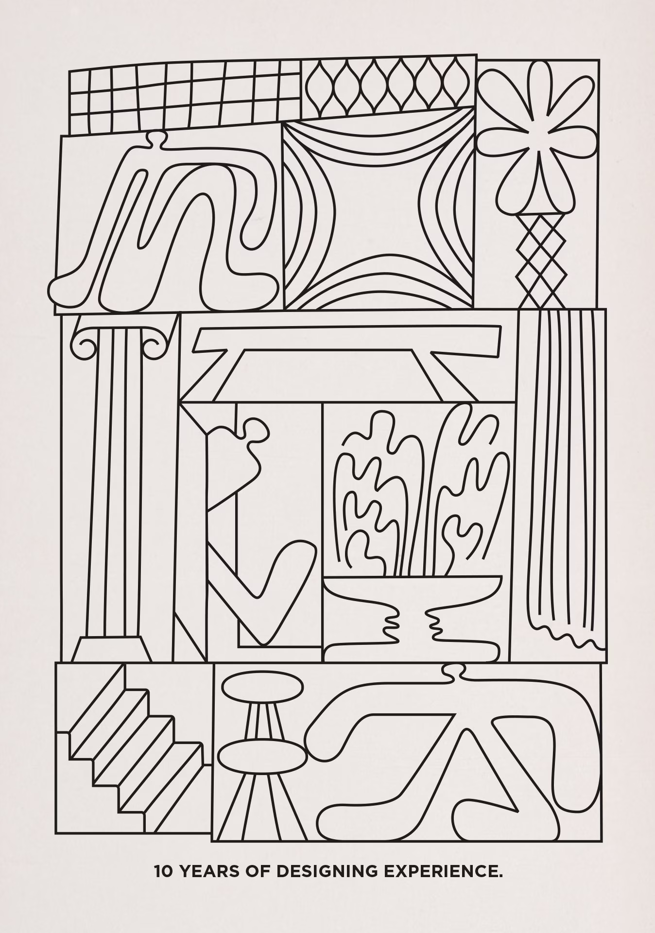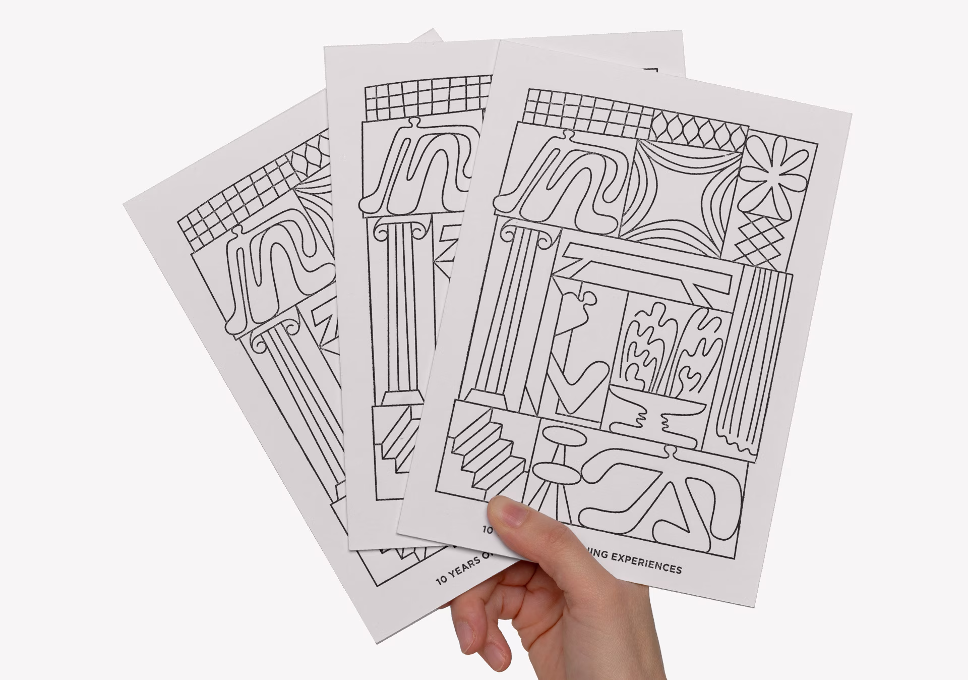 This illustration for the 10th anniversary of Noke Architects – a Warsaw-based architecture and design studio – is a playful take on the exploration and generative potentialities of the simple line. Resembling the traditional architectural sketch, the card was printed on Les Naturals – cardboard made from recycled fibers with a natural color and a raw surface finish, topped with pigment black foil.