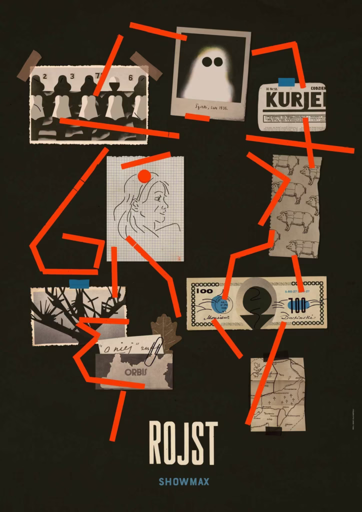 Television series promotional poster. Rojst is a Polish television series created for Showmax, about a murder mystery that not only seems impossible to solve but also is mortally dangerous. In an early 1980s Polish town, a prostitute and a political youth leader are found killed, but the Police’s handling of the case makes two journalists suspicious. The poster depicts the convoluted process of fact-checking by the key character – a young idealistic journalist. Will the facts on the crime board reveal the perpetrator?